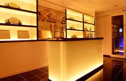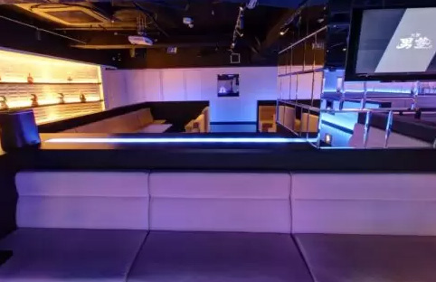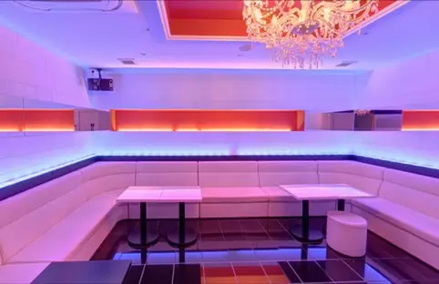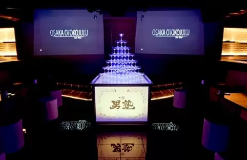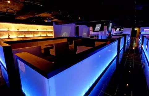大阪男塾のイメージカラー、ブルーにライトアップされた広々とした店内。