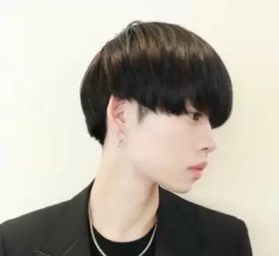 丸いシルエットのマッシュルームカットと、分け目がない長めの前髪が特徴です。